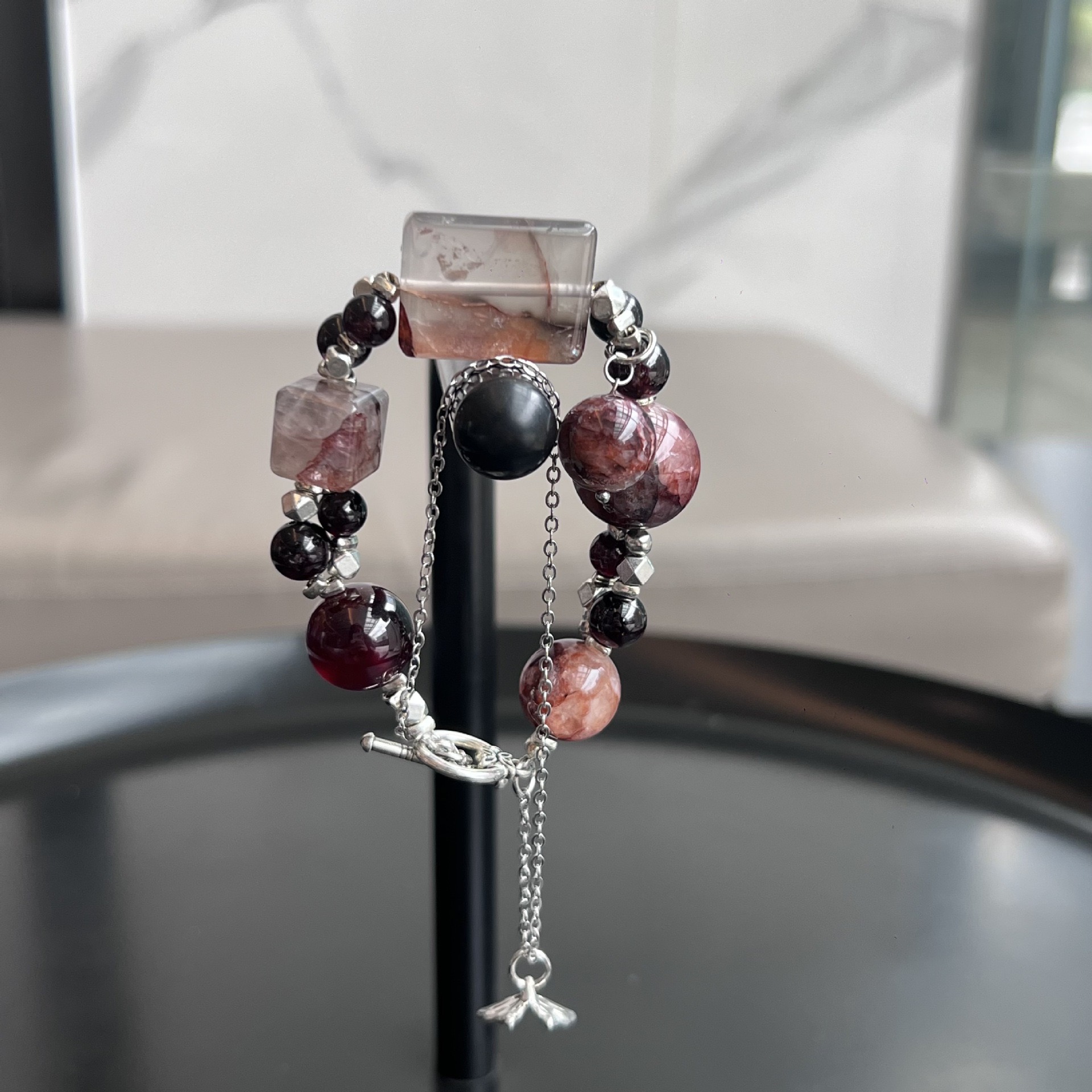 Garnet and red quartz run like pulsing threads. Clear quartz binds structure into purpose. The result: a Red Crystal Bracelet sculpted like thought—anchored like the heart.
